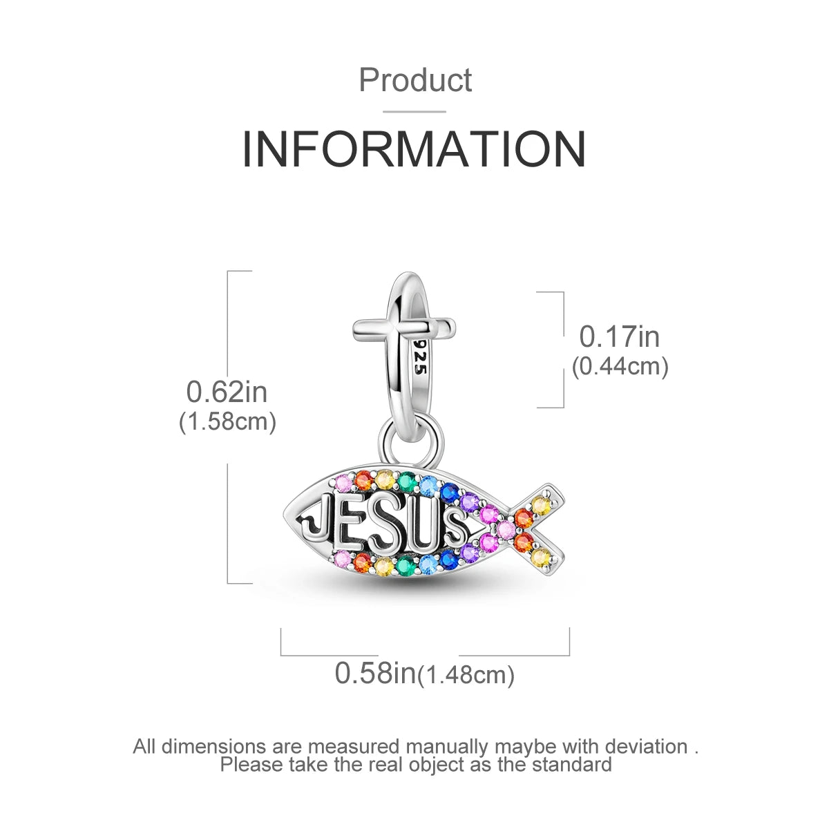 Indulge in the exquisite craftsmanship of our 100% authentic 925 Sterling Silver Charms Bead, adorned with sparkling CZ Zircons and inspired by the divine Holy Light of Jesus and the graceful Fish. Perfectly designed to fit your original bracelet, elevate your style with this luxurious pendant.