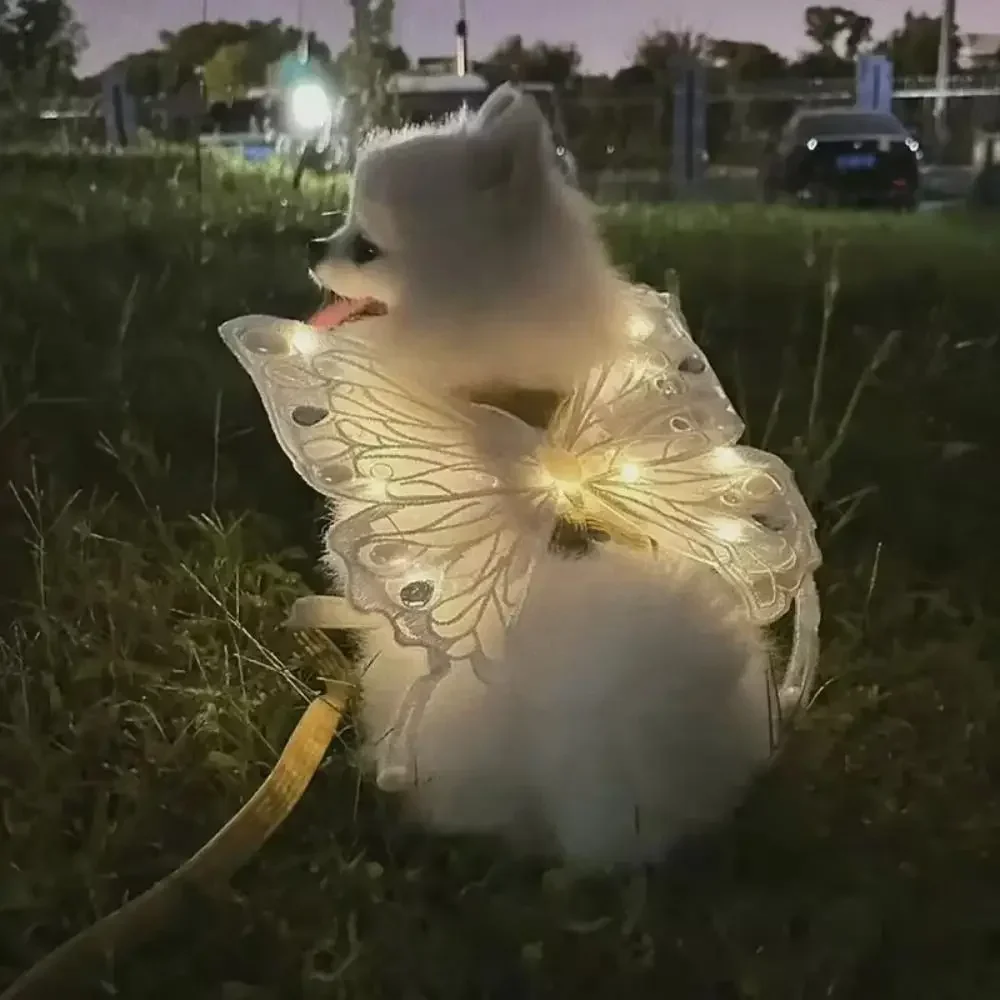1. Enchanting Butterfly Design: These pet wings feature a vibrant and detailed butterfly design, adding an enchanting and whimsical touch to your pet's appearance, perfect for photoshoots and special events.