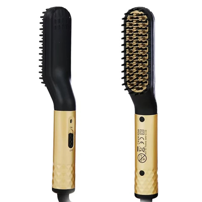 Achieve a refined and polished look with ease using our Men's Electric Beard Straightener Comb in Gold or White. Tame curly strands and straighten unruly hair with this luxury 2-in-1 styling tool, designed for the discerning man. Take your grooming game to the next level and experience the ultimate in beard hair care with our premium beard straightener iron. Effortlessly create a work of art for your hair, elevating your daily routine to a luxurious experience.